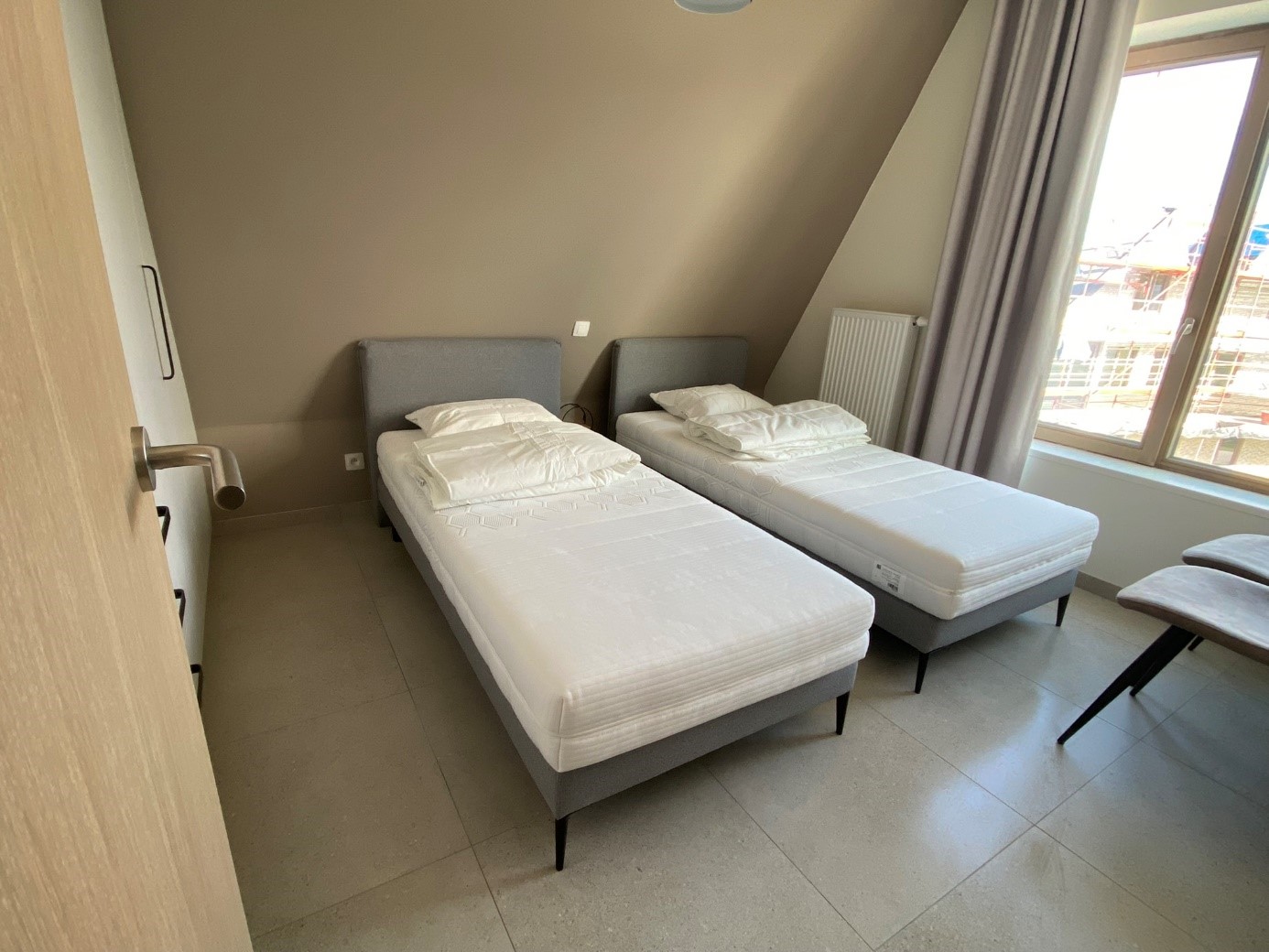 1 slaapkamer met 2 eenpersoonsbedden.